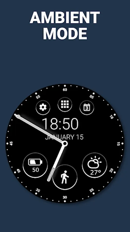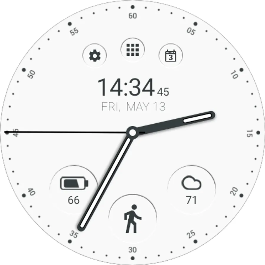 The Classic Watch Face is built for use every day, it simplifies many use cases such as launching programs, setting brightness, or being informed about watch battery usage.