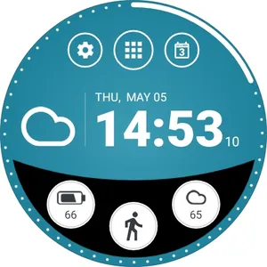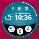 In this watch face app, you can customize the appearance and view weather, battery status, and shortcuts. Includes multiple background colors, complication support, and auto-lock options.