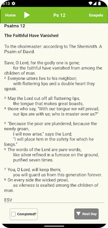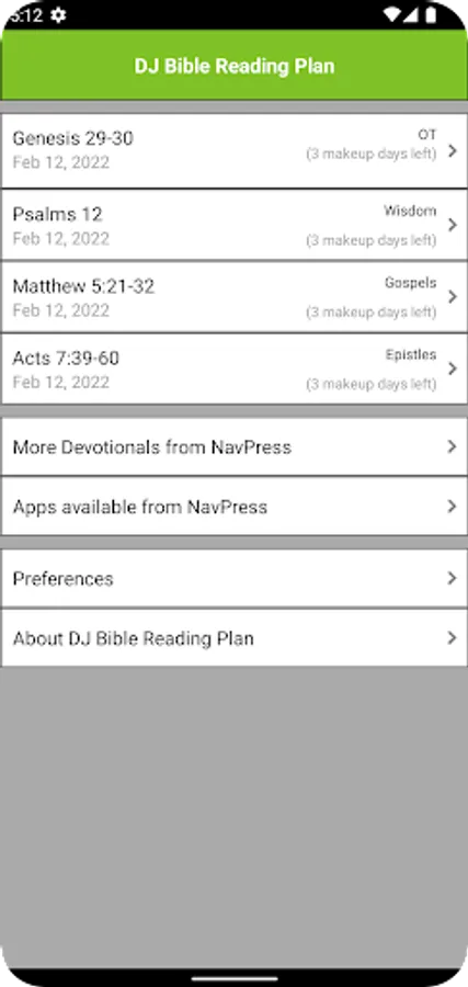 For those who are already following the DJ reading plan on paper, you can switch to using this application by indicating your current progress with the "mark all completed before date" in Preferences.