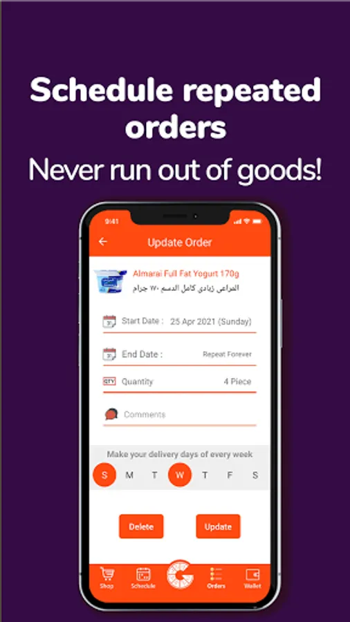 • Repeated orders: GoodsMart wants you to enjoy daily fresh products rather than buying in bulks! You can schedule orders in advance, in addition you can choose the repeated orders option which let you customize schedules for your weekly or monthly needs. This option saves your time & assures you never forget to order what you want specially for daily fresh products and meds.