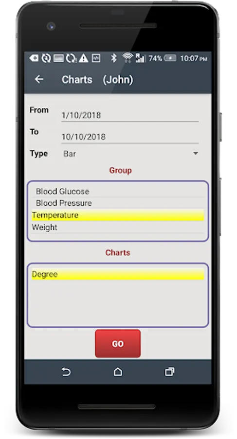 Health apps interface is easy to use with graphic Display of your data using multiple charts types and apps generate multiple reports ; you can export reports to file or send it by mail .