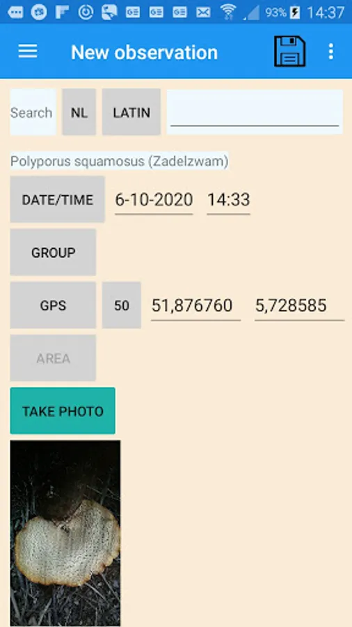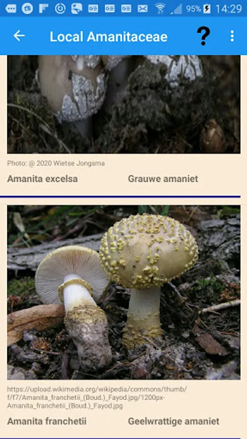 Opslag en identificatie van waargenomen paddenstoelen (fungi, mushrooms)