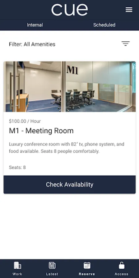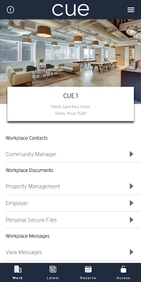 CUE Office powered by Honeycomb connects co-working technologies with users. Conveniently manage reserving amenities, reporting issues and work orders, access control, parking profiles, and providing feedback to improve your workplace experience.