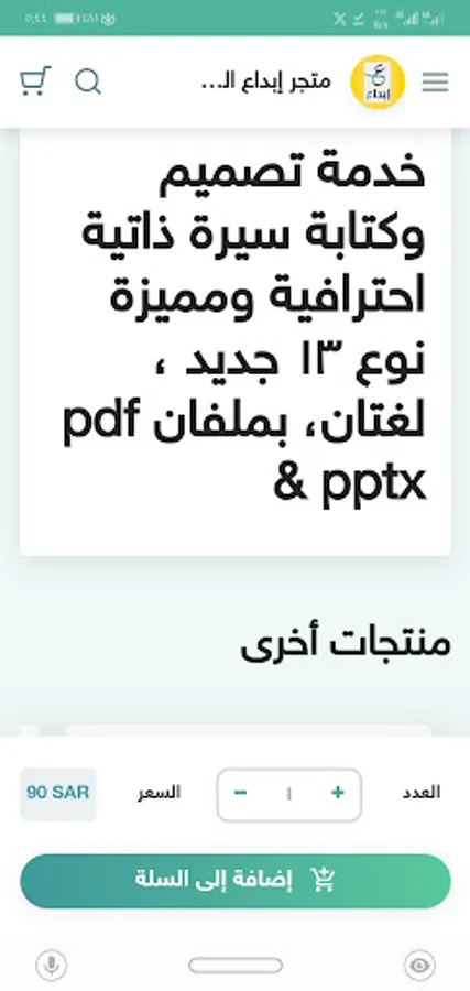 Ebdaa digital store for selling professional and digital services, such as designing and writing, designing a professional resume.