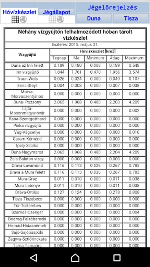 The results of the calculations for HYDROINFO trading application available product of wealth finds text, tabular, graphical and map formats. Quickly offers the latest Danube, Tisza, Drava forecasts, meteorological background information or even sub-basins of the accumulated amount of snow on the Danube catchment area.