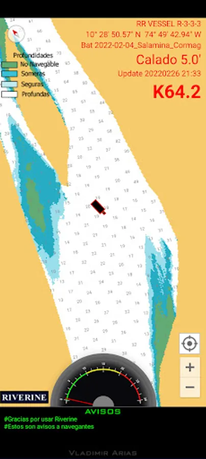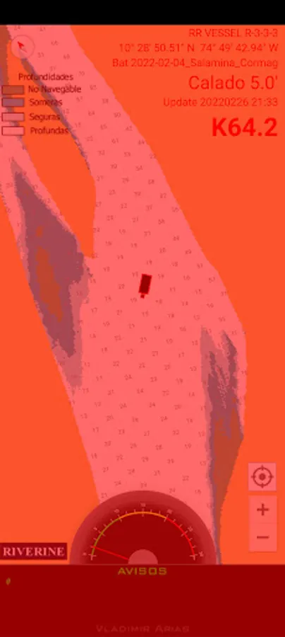 Riverine is an App designed both for consultation and for navigation in boats, boats and cargo tugs with public and/or private content of bathymetry and maps of rivers, streams and swamps in Colombia.