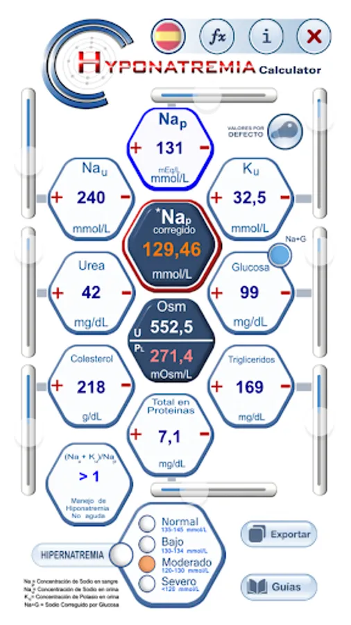 Hyponatremia Caculator allows calculation of sodium level in plasma corrected using a set of variables that can modify natremia.