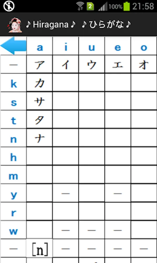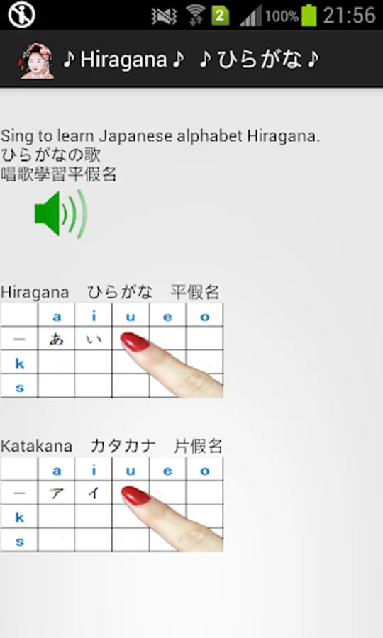 You can check Do you remember the hiragana and katakana If you tap each frame of 50 sound table.