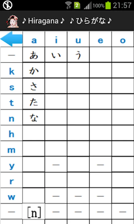 Tap the hiragana or katakana table to confirm your memorization.