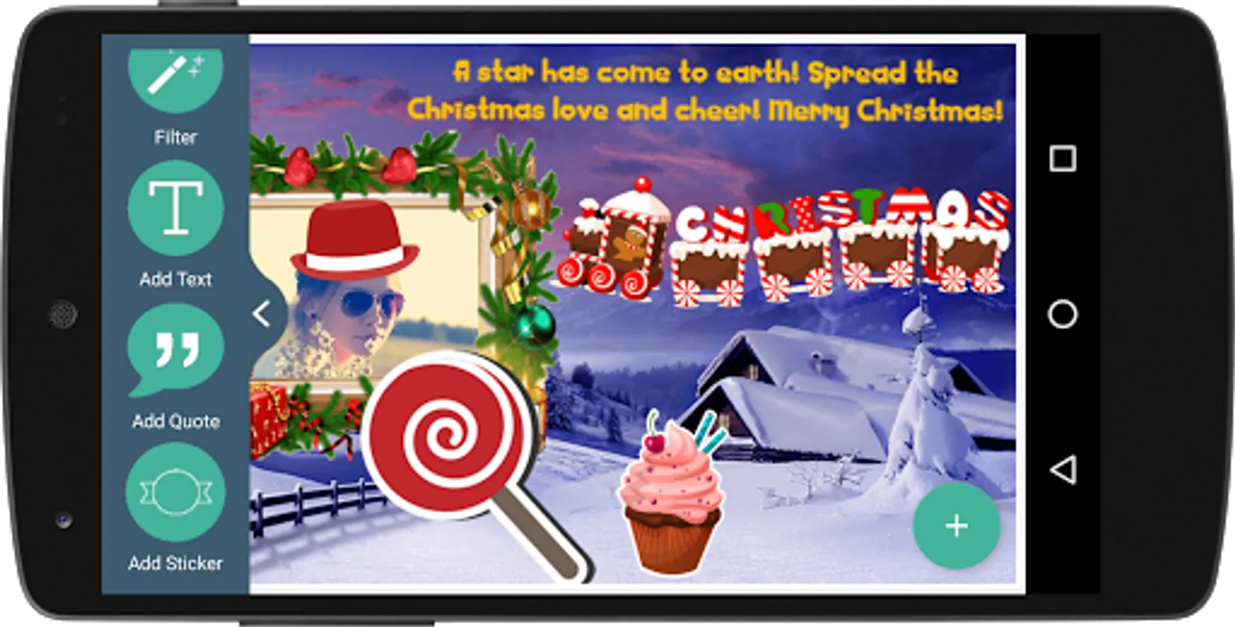 ✔ Text Editor available with a beautiful collection of font style to write your own quotes on Xmas greetings.
