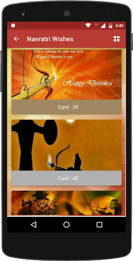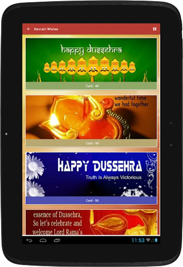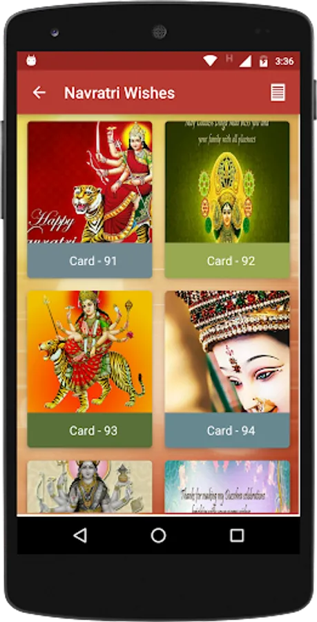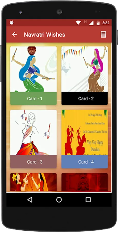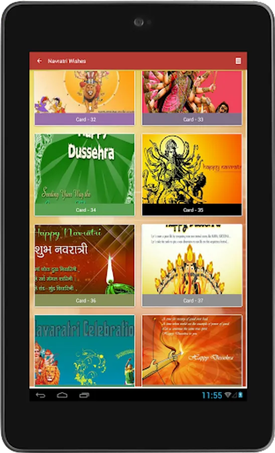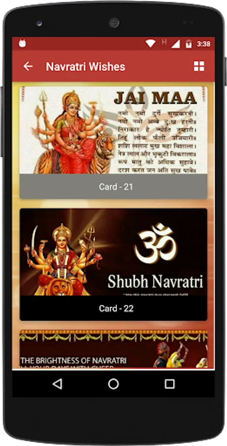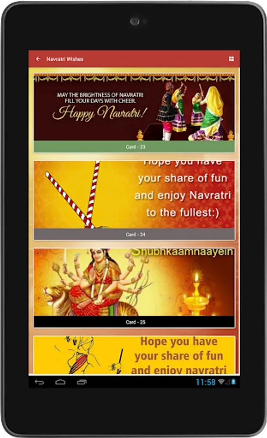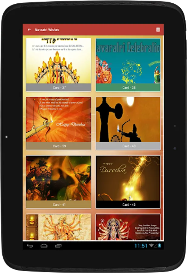 Navratri Wishes app provides a beautiful & huge collection of Navratri and Dussehra greeting cards.
