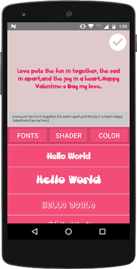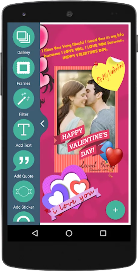✔ Text Editor available with a beautiful collection of font style to write your own quotes on Valentine's Day greetings.