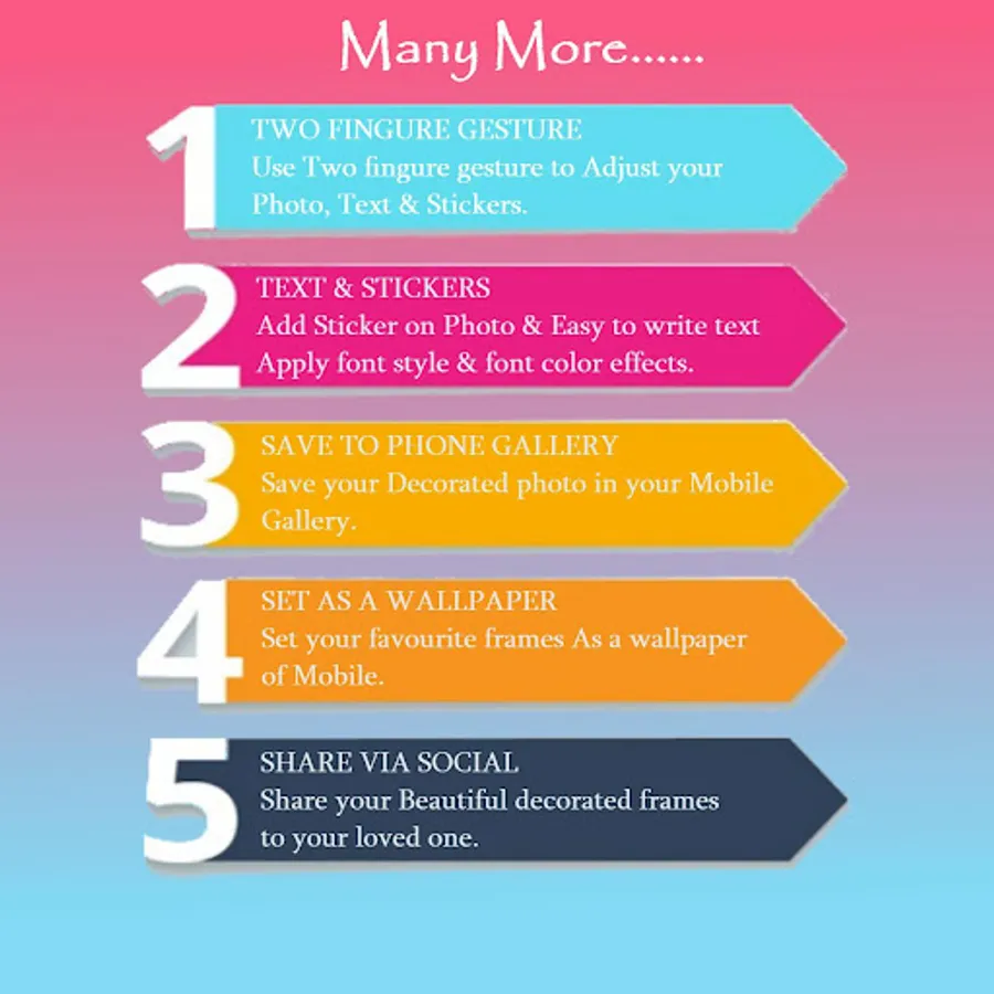 ✔ Select your favorite frame from the collection and set your photo with the frame. Two Finger Gestures available to adjust your photo in the frame.