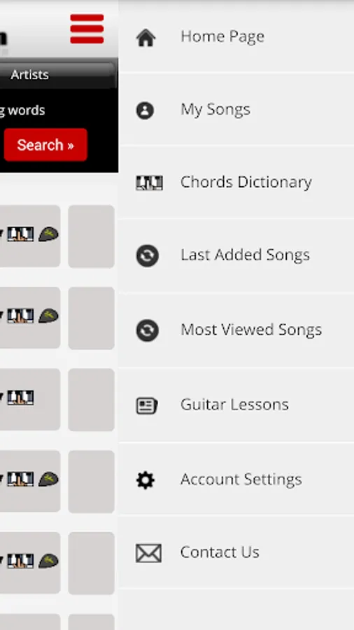 In addition, you can get guitar lessons, chords dictionary and see the last 100 songs added or the most viewed.