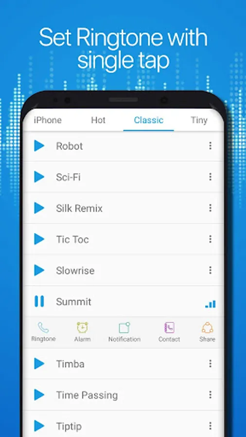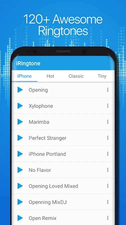 iRingtones for android is best app for you. iRingtones for android is a collection of the best and most iphone ringtones for android phone. More than 50+ popular iphone ringtones and new iphone ringtones here. You can set them as your ringtone, message, alarm, notifications, or set ringtones.
