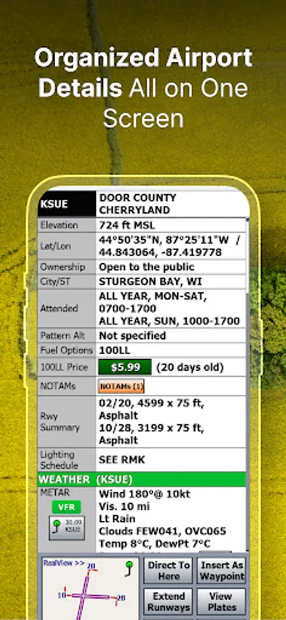 RealView Airports provides satellite imaging of 12,600+ Airports for pilot reference and our AutoTaxi+ feature. Have a visual knowledge of the airport before arrival.