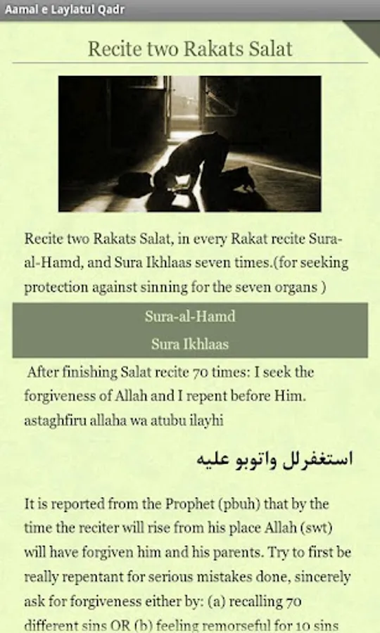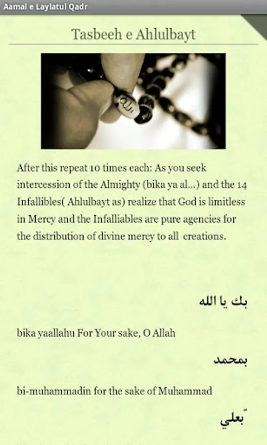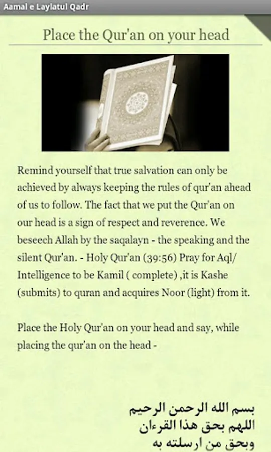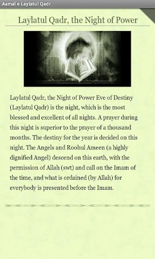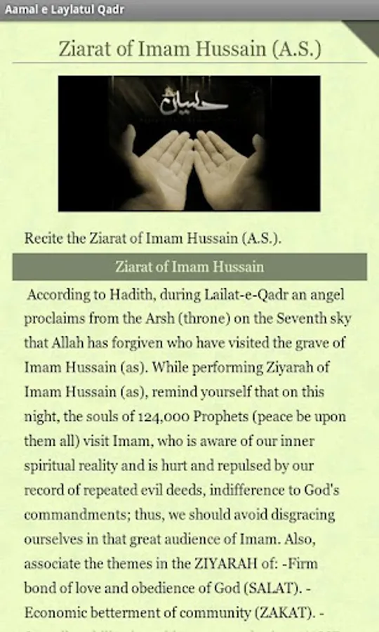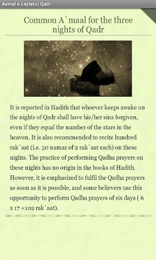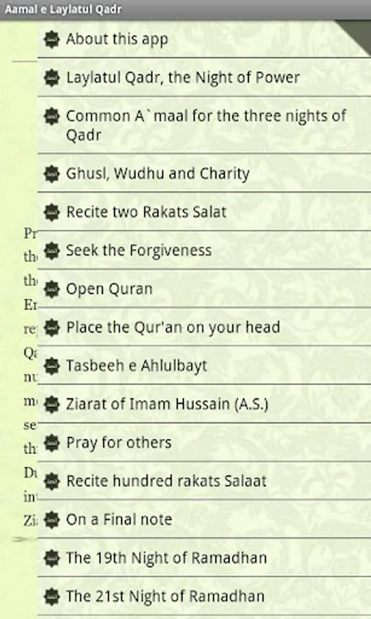 This is an effort towards the need of people who wish to the amaal on the powerful night of Laylatul Qadr and look for sources and guidance to perform the amaal. This app is a single source which has step by step guide for the amaal and most of the duas (supplications) included along with the Transliteration and Translation in english. We hope our effort will be helpful for many. May blessings of Ahlulbayt be upon you and Maula Ali removes all the difficulties of your life.