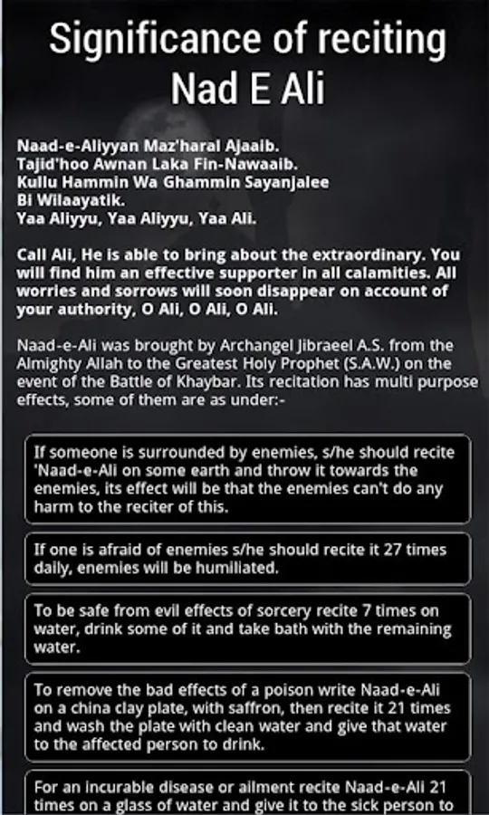 For the lovers of Ahlulbayt. A powerful protection for Shia of Imam Ali (a.s.). This app provides you way to call for the help of the protectors of all mankind - Maula Ali Mushkil Kusha.