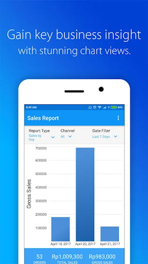 Easily manage your iSeller store whenever and wherever you are! Get realtime sales and low-stock notifications right on your phone, gain key business insights from the stunning dashboard, access dozens of reports with customizable filter and metrics – all with just a few taps.