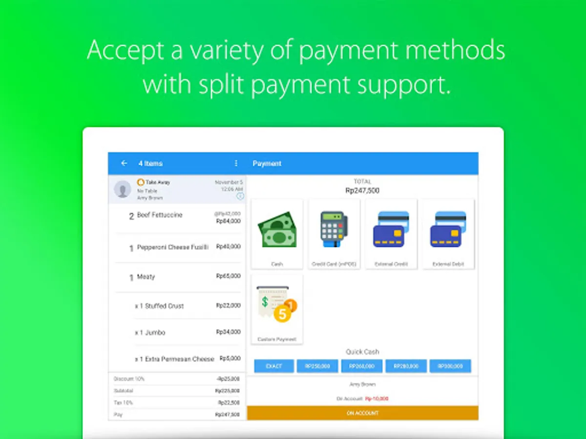 Optimized for express checkout experience, you won't see functions that you don't need in a quick service such as table management and restaurant-class workflows. It combines the best of retail and F&B product features, creating an authentic point-of-sale experience that is just right for your business.