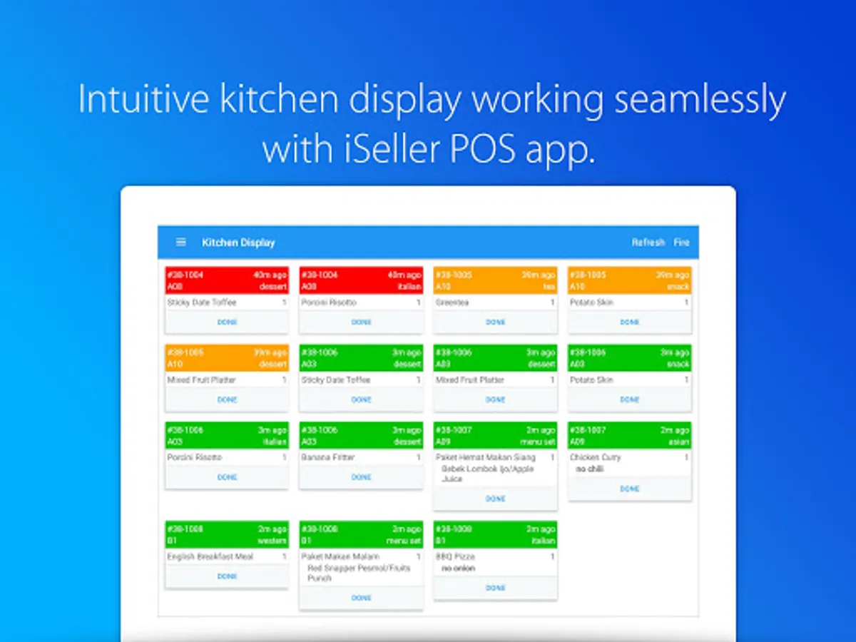 Level up your kitchen management with smart kitchen display. Missed orders and overdue delivery are things of the past. iSeller kitchen display notifies incoming orders neatly based on first-come-first-serve basis. Chefs can easily tap on processed items to mark completion. Welcome to the next-generation kitchen management!