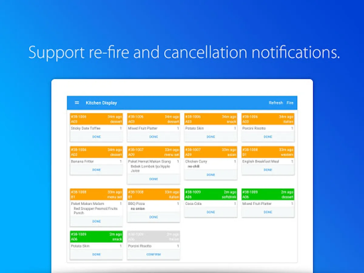 • Simple, intuitive and easy-to-use interface designed for chefs. Simply mark an order as complete with a single tap.