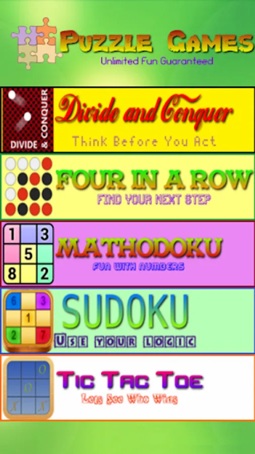 This app is for those who like Puzzle Games , We are happy to deliver more games in One app with less Memory, in this we included Following Games