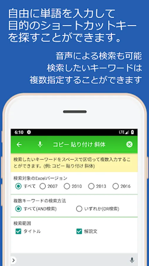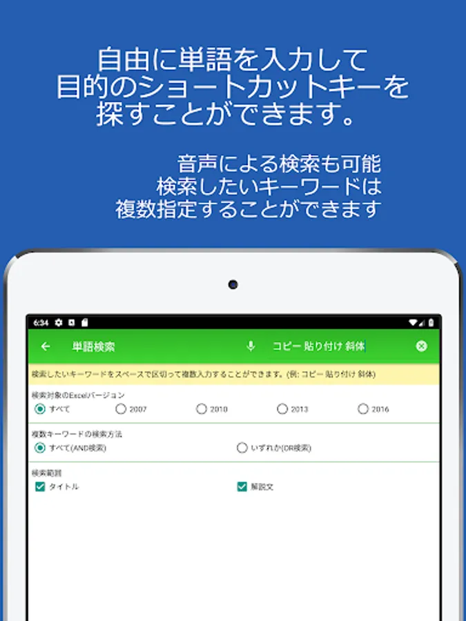 In such a case, use this app to search for the desired Excel shortcut key from word search or key input search.