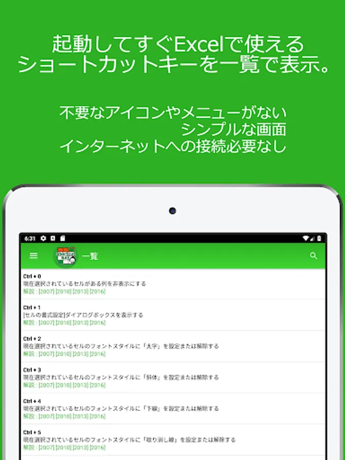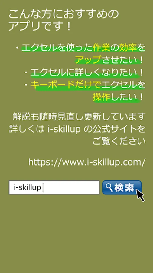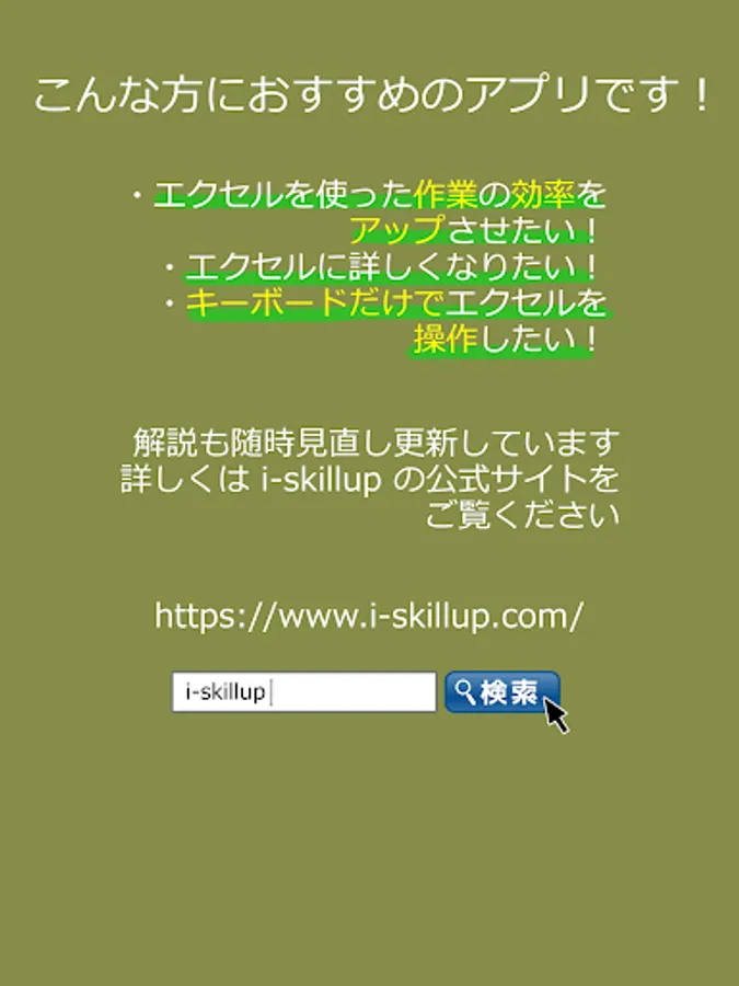 Explanation app of Excel shortcut key by e-learning site i-skillup.