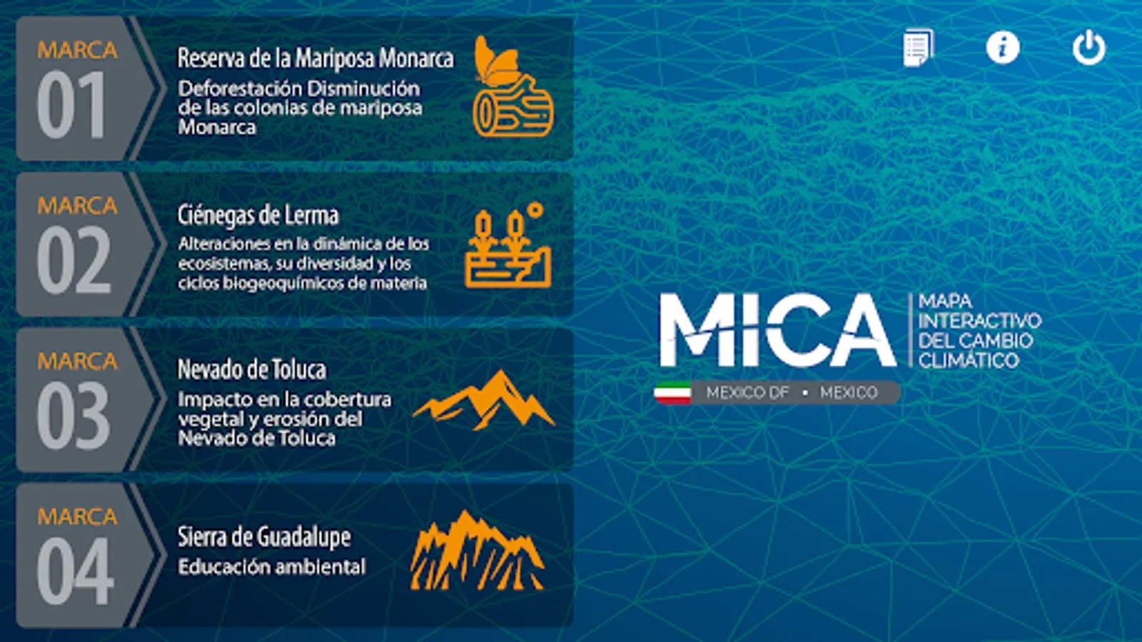 MICA. Interactive Map of Climate Change of the Mexico City Region, offers the opportunity to build scientific knowledge from an integrated perspective and understand some scope, limitations and implications of science and technology in society. The MICA perspective makes it possible to make visible the various processes that relate scientific and technological knowledge with the construction of society, and vice versa, allowing to engage with critical thinking in daily life and contribute to the exercise of a participatory and conscious citizenship. Educatively communicating scientific knowledge and technological development within the framework of Climate Change is essential for the future well-being of society, since adaptations, mitigations in this area will allow progress in appropriate measures for the conservation and protection of the environment of the Mexico City Region.