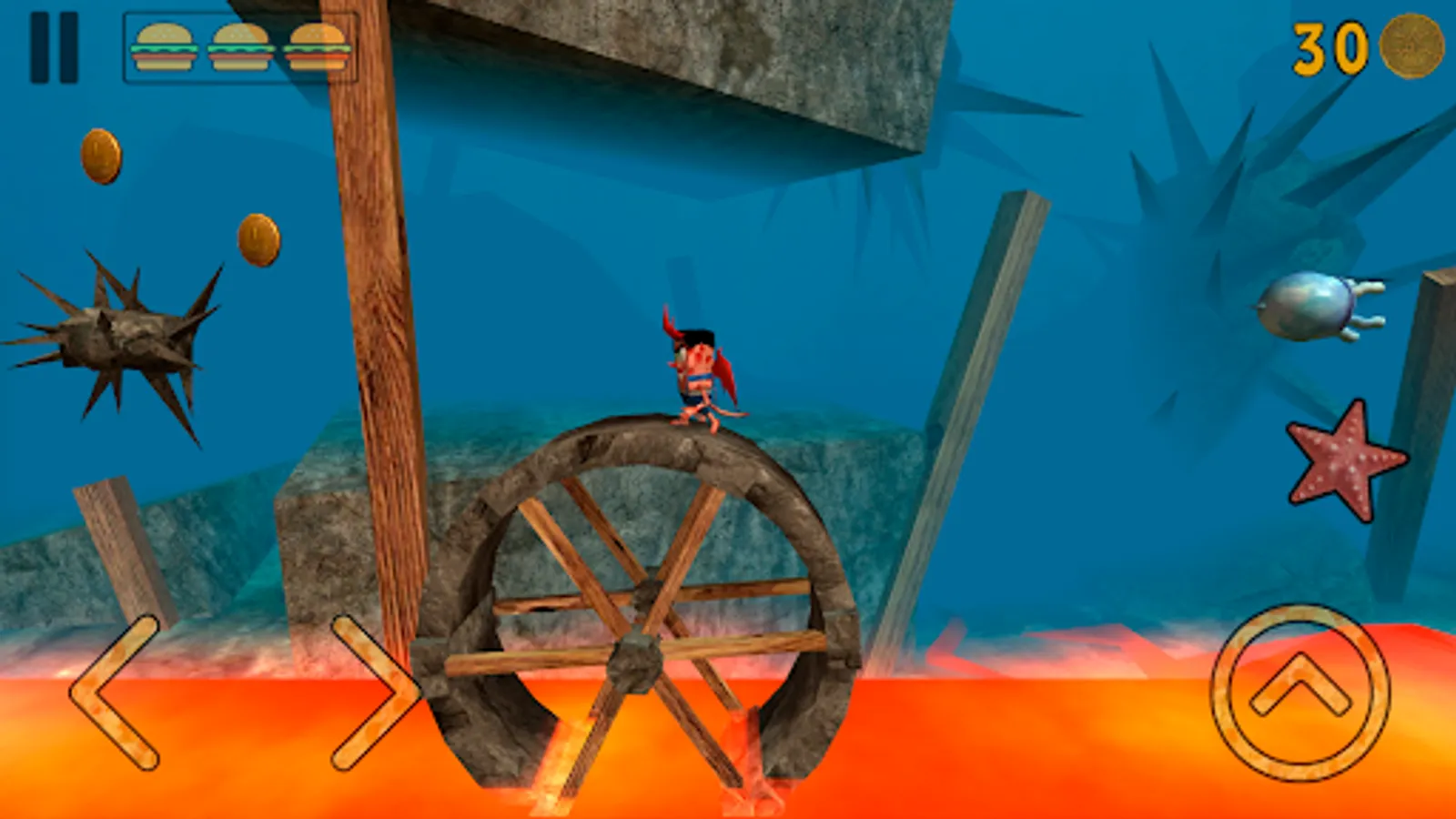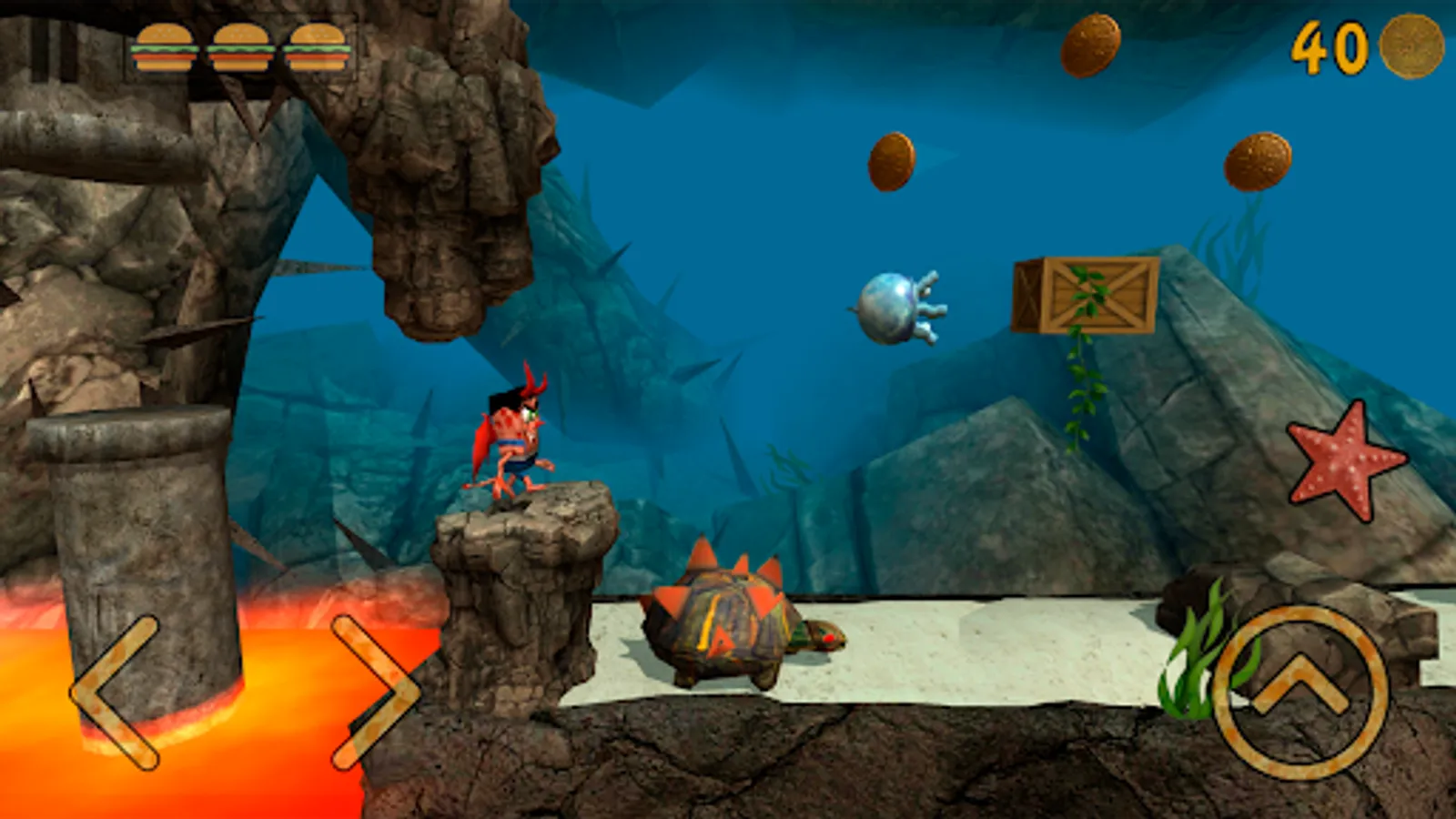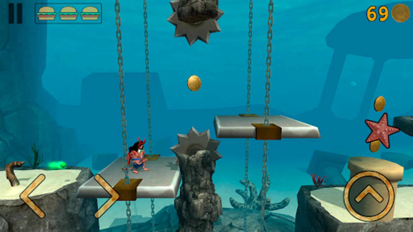Many years ago, great and greedy magician decided to get rich. He found a treasure map, but these treasures were hidden at the bottom of the sea. The magician has decided to create a monster which will obey him and would get the treasure from the bottom. He spent the ritual and created the Angry Bob. Bob was very strong, brave, quick, he loved gold and he was able to do a double jump. Bob glanced at the treasure map and went to search for them. So adventure begins.