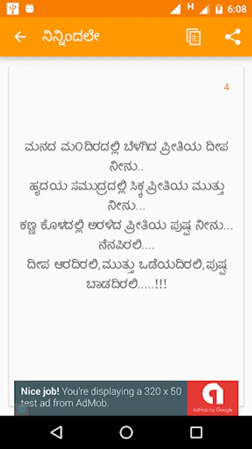 This app has largest collection of "Only Kannada Language Messages" with an easy to handle User Interface.
