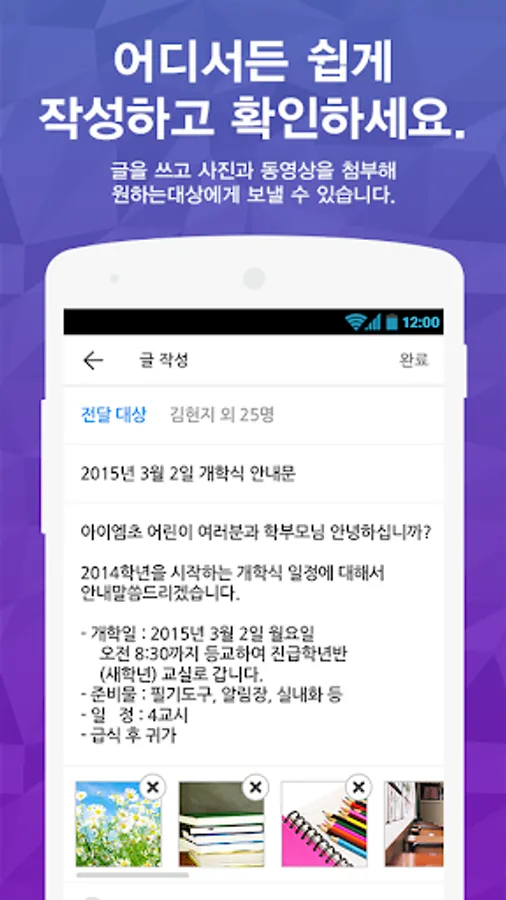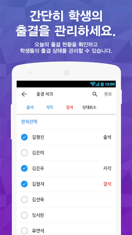 Anywhere, anytime, you can manage the attendance of students through smartphones. Attendance treated as simply touch a few times, real-time attendance, the news will be sent home.