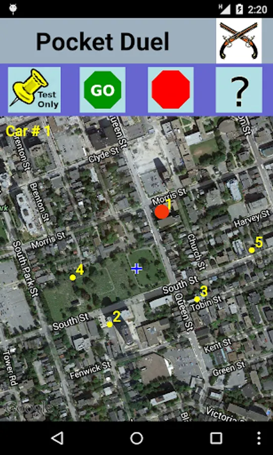 The first time, another number will be written in the upper left corner. Next slide the map so the center is where you want to place the test opponent, then tap Test Only. The opponent location should then appear in yellow. Then use the Back button and go to the Set Duel Info page and reset the number to the one you want to use for yourself, and return to the