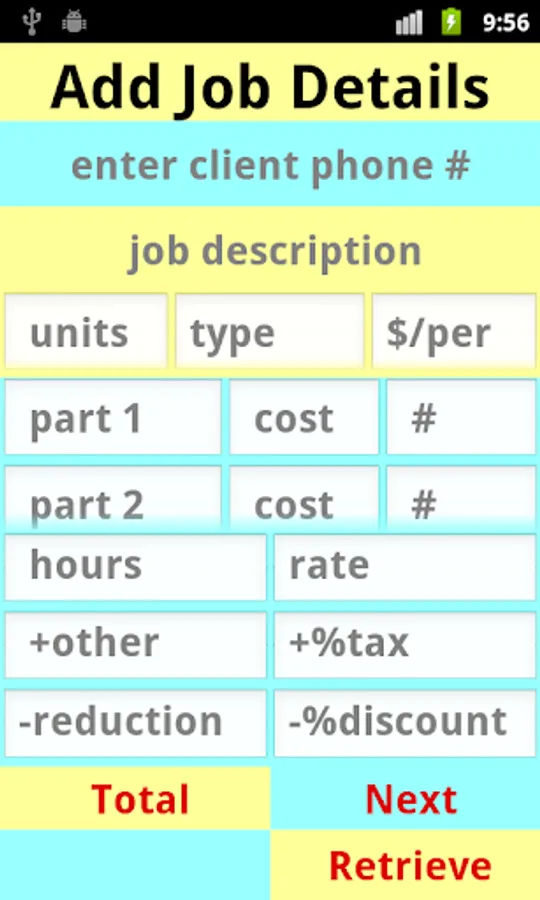 Enter the client phone number at the top, then a job description just below that.