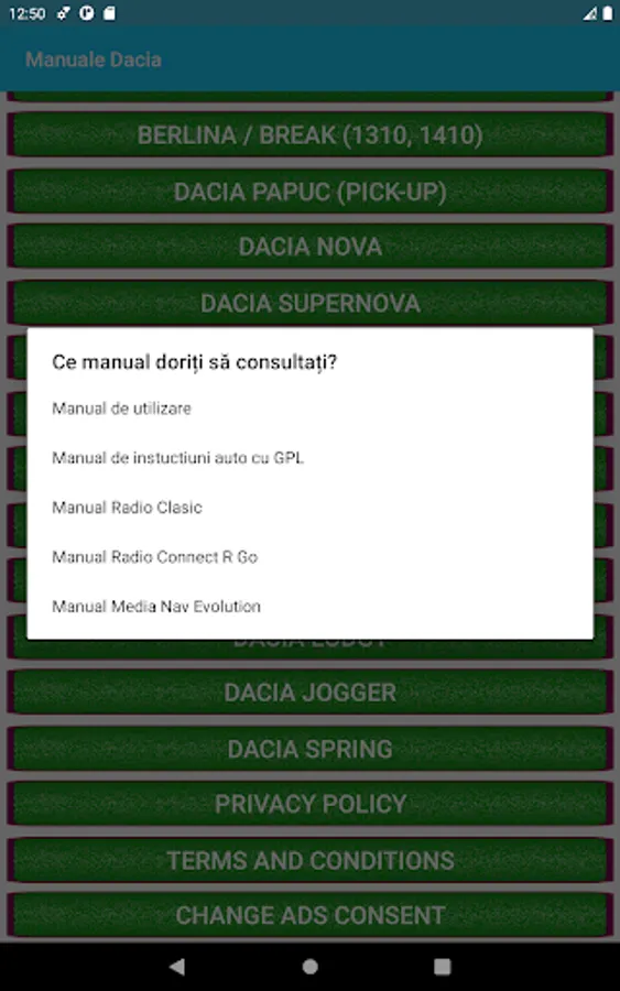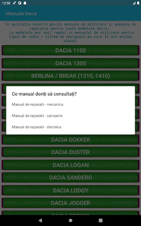 The user manuals available in the application are provided free of charge by Dacia / Renault, the copyright for them is fully owned by Dacia, we just help you get to them in a simple and fast way from your mobile phone.