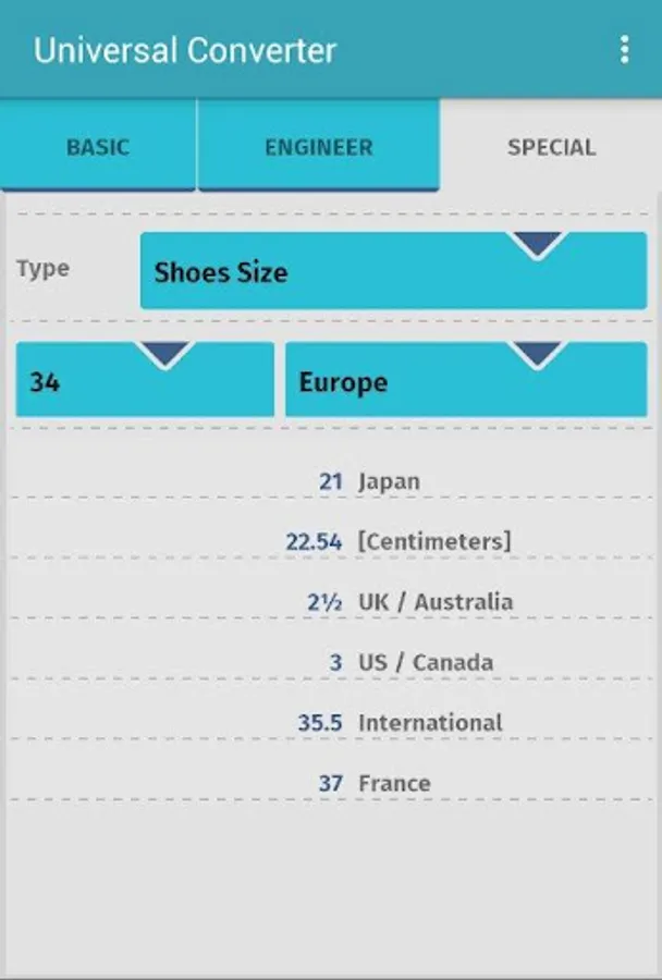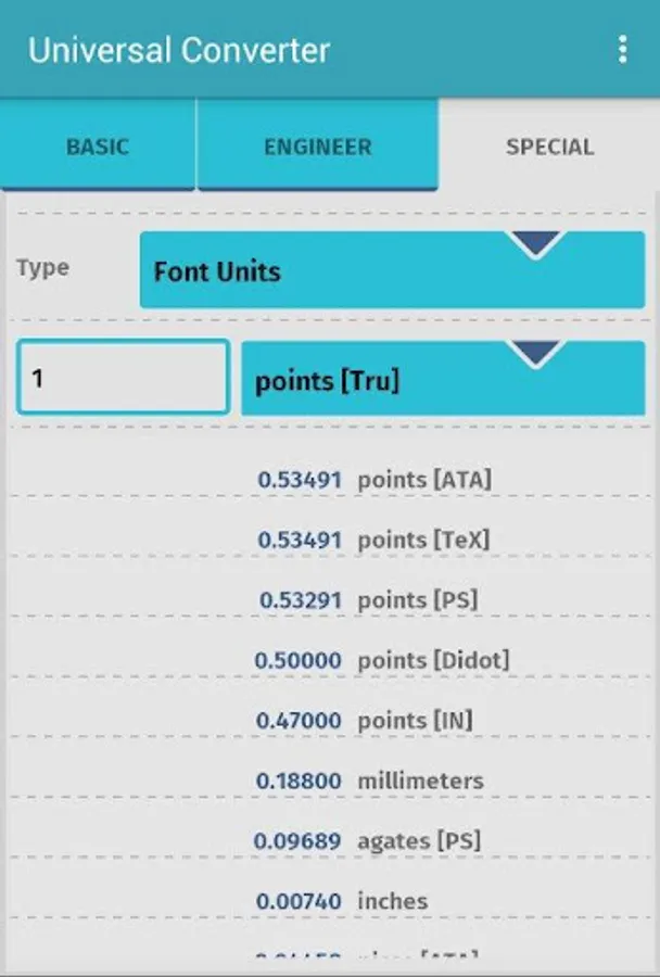 Universal Unit converter has an intuitive and simple UI and has more than 40 unit conversion categories.
