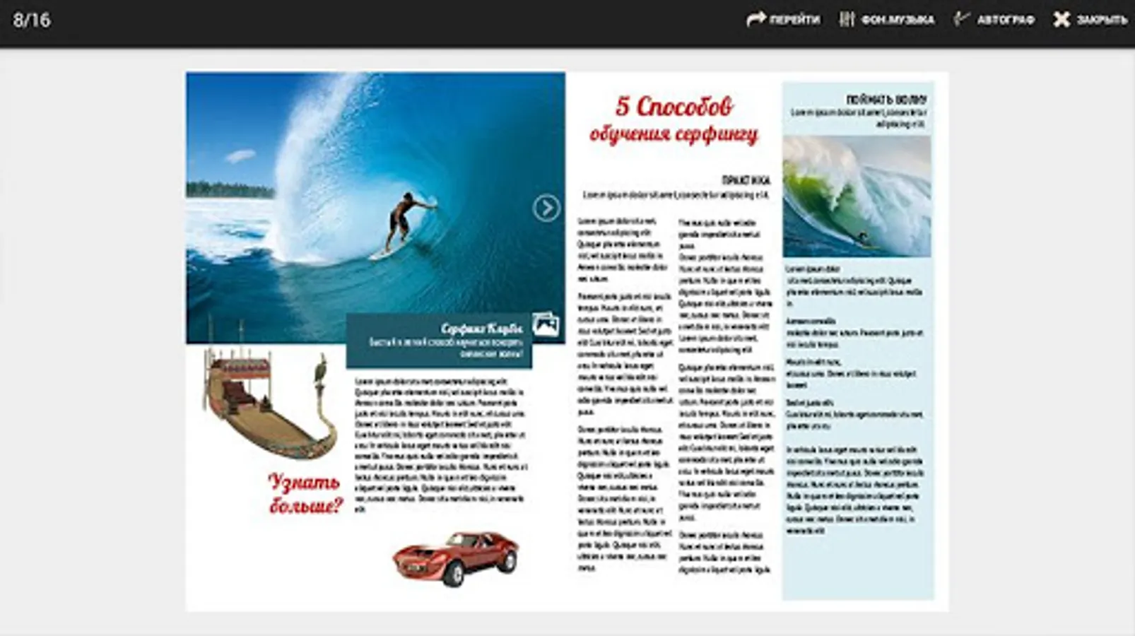 - Production of multimedia books and magazines with an editor Mbook Editor;