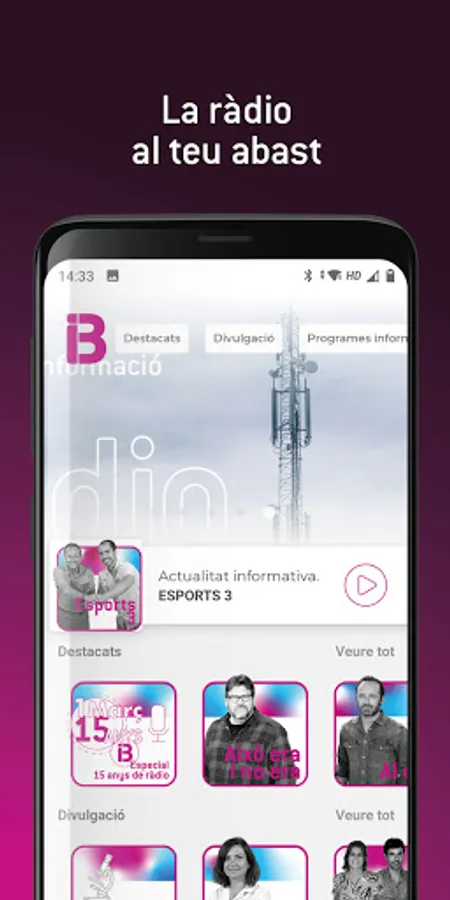 A la nostra App t’oferim totes the emissions direct from the radio and television.