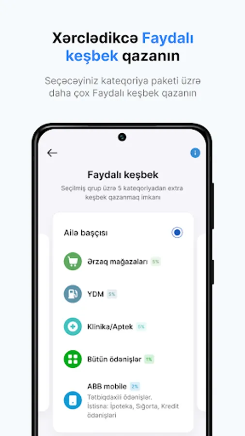 • By choosing one of the "Faydalı cashback" packages you will be able to earn high interest cashback in 5 packages.