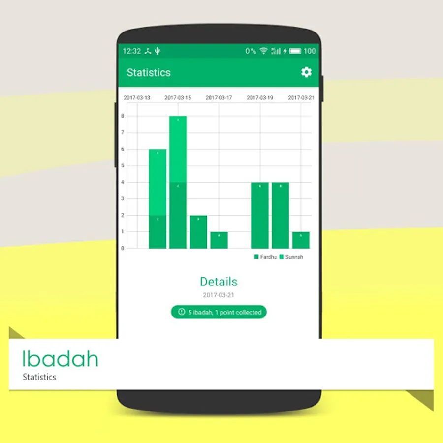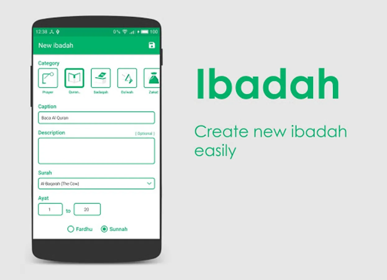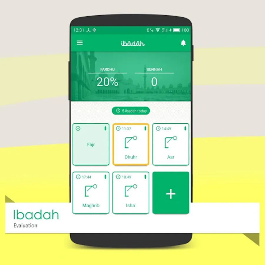 Islamics apps for charity or prayer yaumi evaluation. There a few categories of worship such as Prayer, the Quran is read, Sadaqah, Da'wah, Zakat, and others.