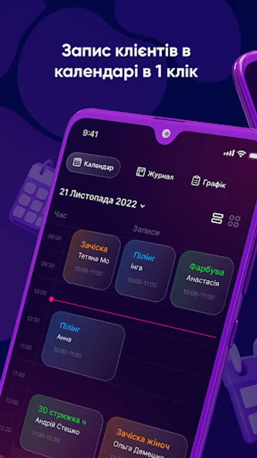 Digital calendar - a schedule of customer visits in a convenient calendar. Registration of customers in 1 click. Access from all devices.
