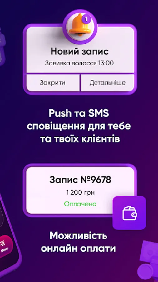 Push and SMS messages - you will not miss a single entry, and the client will definitely receive a confirmation from you.