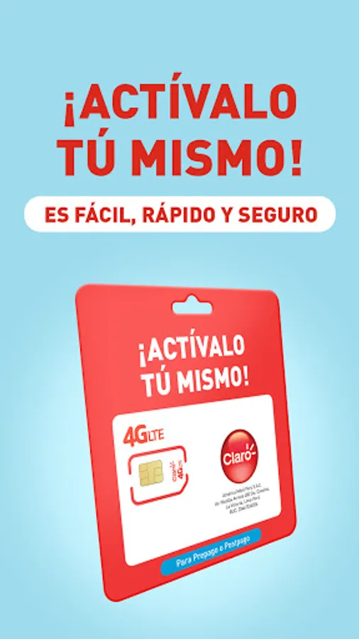 You only need to scan the barcode of your Claro chip, enter your identity document number, select how you want to activate your Claro chip, validate your fingerprint and Done… !!!