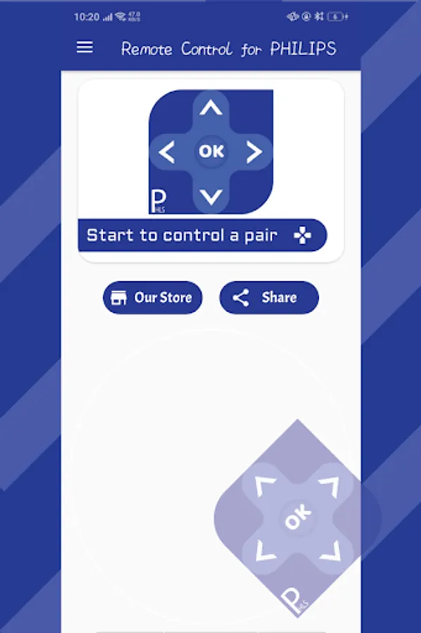 PHILIPS Remote App PHILIPS Remote App PHILIPS is a virtual universal remote control PHILIPS Remote App is a universal virtual remote control created to let you control your TV using your Android devices. Main Features TV Remote Control * Easy - the app is very simple and very straightforward (you can watch the video on the app to know how to use the app and get help if you need it). * The remote app for PHILIPS TV is completely free, we rely on ADS. * The app works with most TVs of different series. a virtual remote control for television based on IR mode.