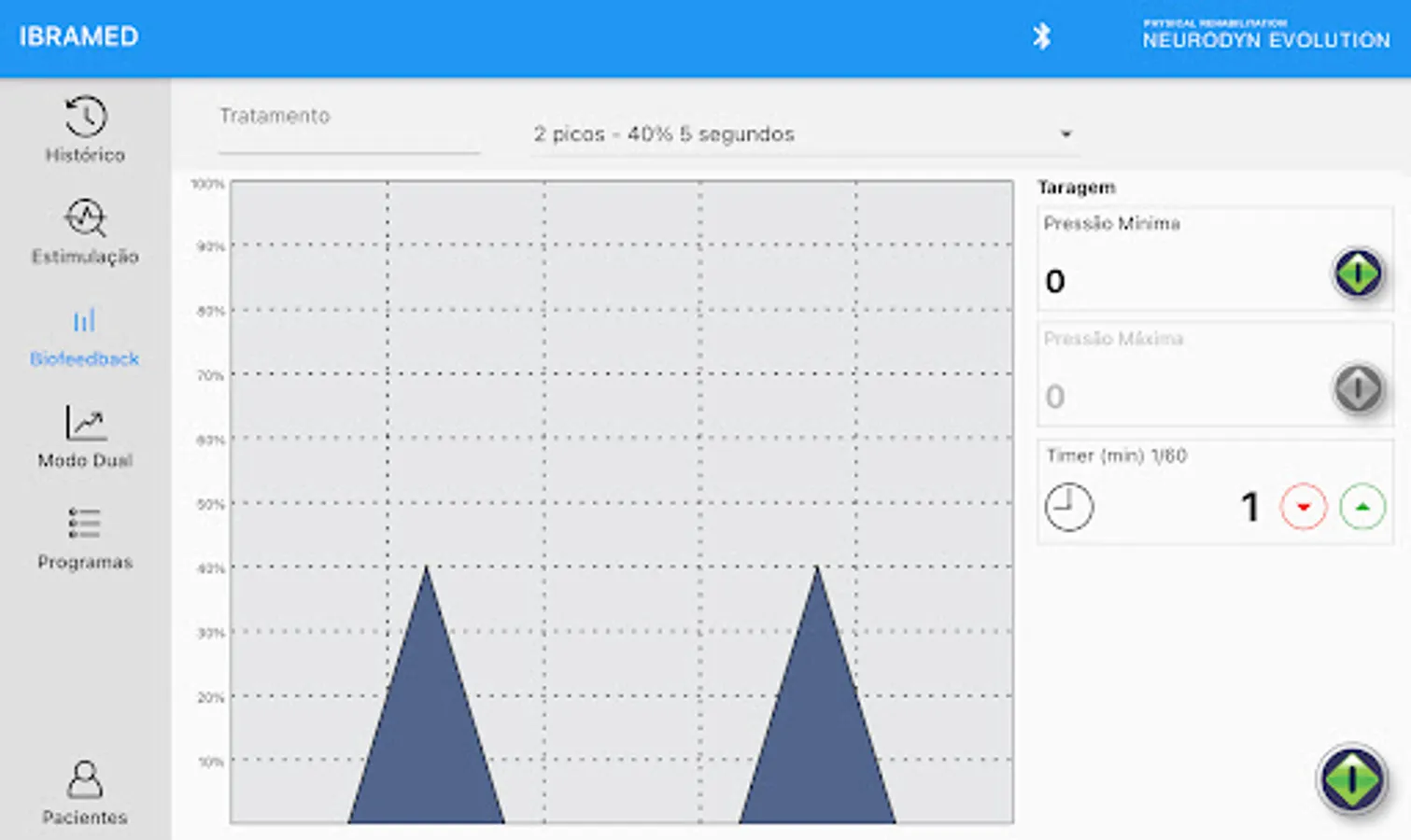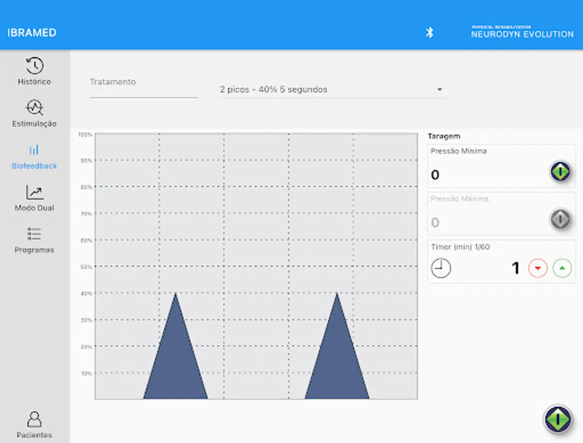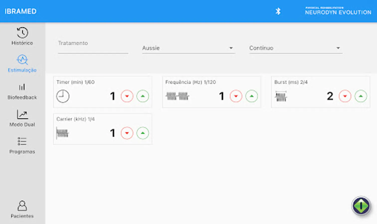 The Neurodyn Evolution application was developed to allow greater practicality for the professional, being possible to program and save the therapies according to the needs of each patient, guaranteeing a better performance in the use of your Neurodyn Evolution.