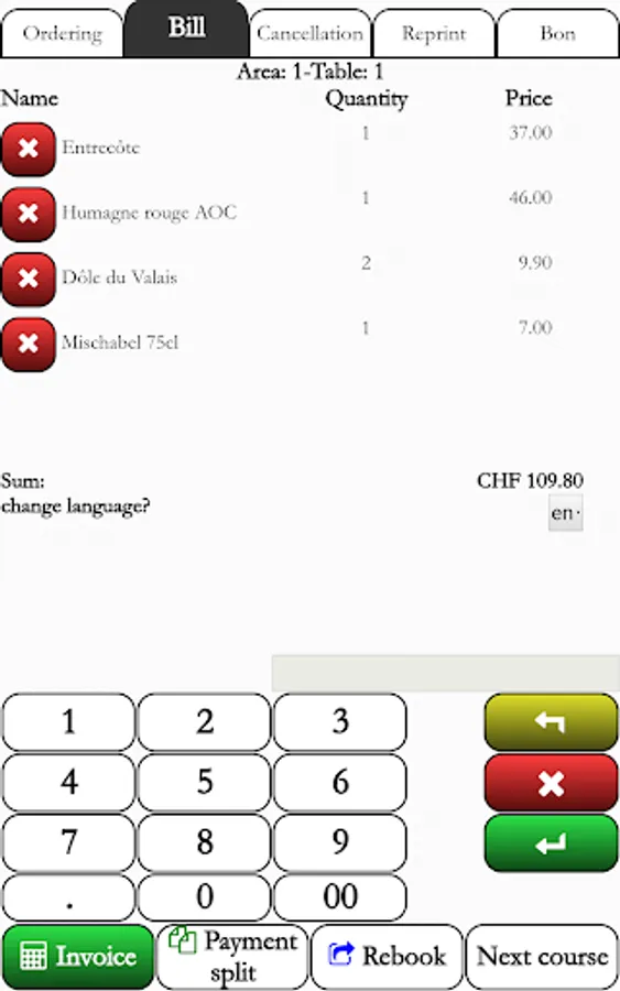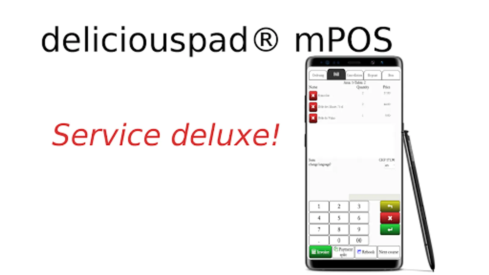 Full-featured free cash system / cash register for your smartphone or phablet and your restaurant: