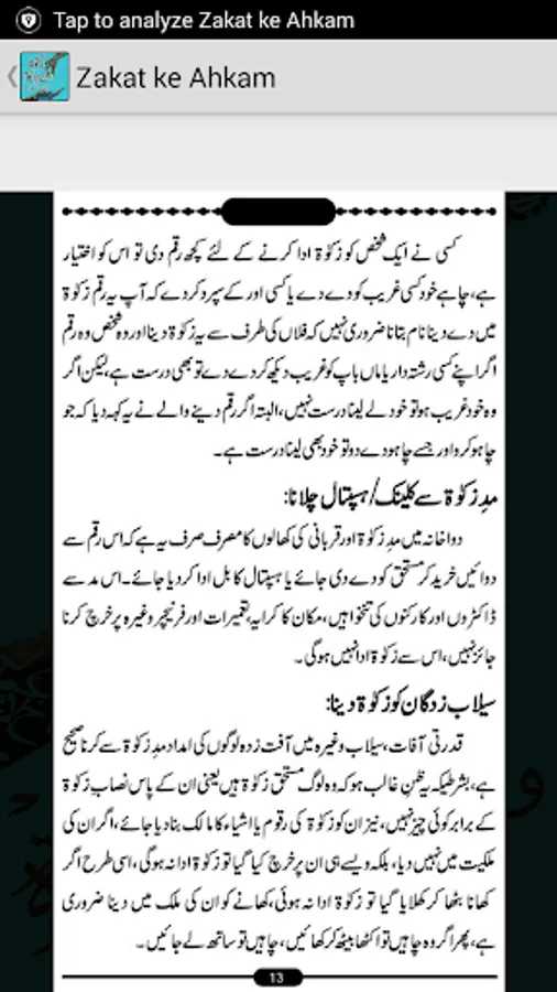 Zakat ke Ahkam application hamare sarfeen ko zakat ki ehmiat aur afadiat se agah kerne k liye banai gayi hai. Is app mai shamil hen tamam maloomat jo zakat se mutalik hen. Kisko zakat dena hai? kitna zakat ada kerna hai? kya mujhper zakat wajib hota hai? Kaise zakat ada kerna hai? ese tamam sawal jo hamare behen bhai k zehen mai hon, woh is application se apne tamam sawalat k jawab hasil kerke ramzan ke babarkat mahine mai apni zakat ada kerke Allah ki qurbat aur khushnoodi hasil ker sakte hen.