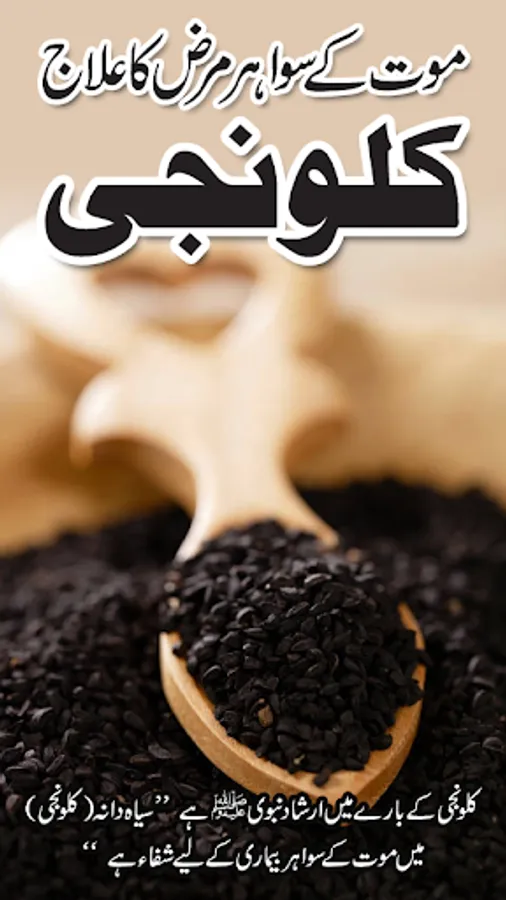 Kalonji Allah ki tarafse di gayi kayi hazaron naimaton mai se ek hai, jo bazahir to ek mamooli sa siyah (kaala) beej hai laikin iske bahut se fawahid hen. Is anmol Kalonji ke dane ke barey mai Irshad-e-Nabvi bhi hai ke isme maut ke siwa her chiz ke liye shifa hai.