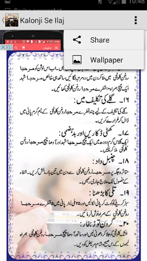 Is app mai hamare saarfen ke liye yehi nahi balkey bari bemarion se mutalik bhi elaj ki tadabeer batai hen jinme sugar jese amraaz ka bhi elaj shamil hai.